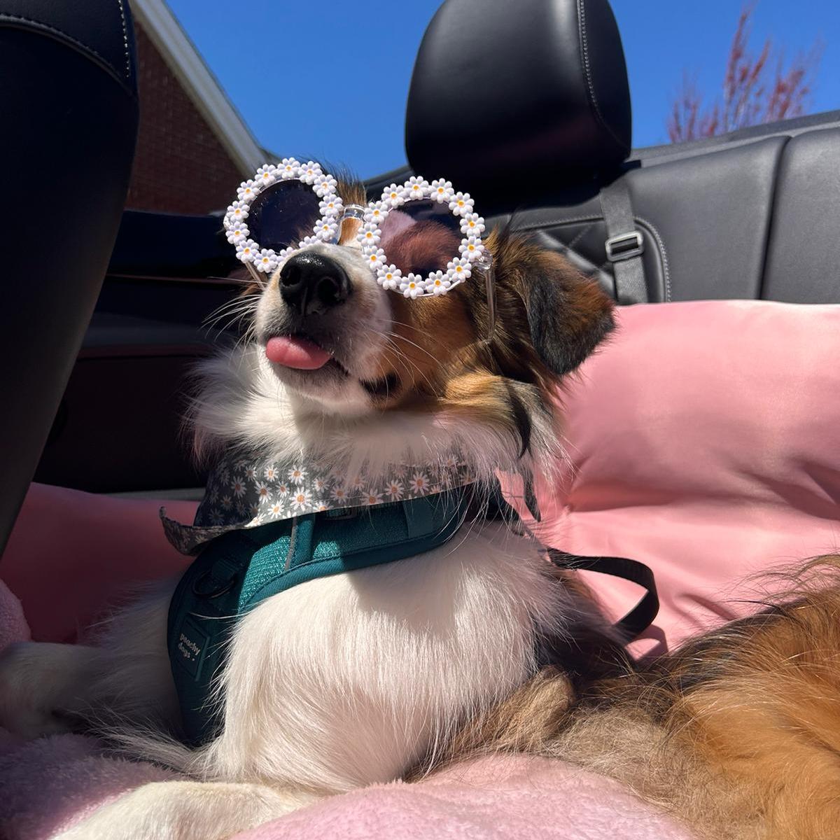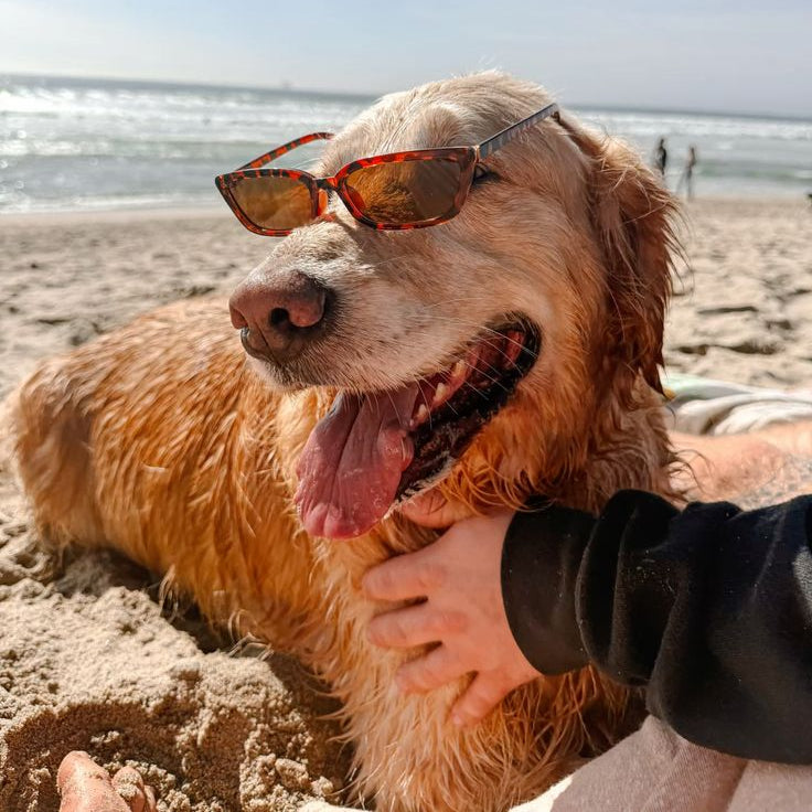Sun, sand, and the coolest pup on the beach.
